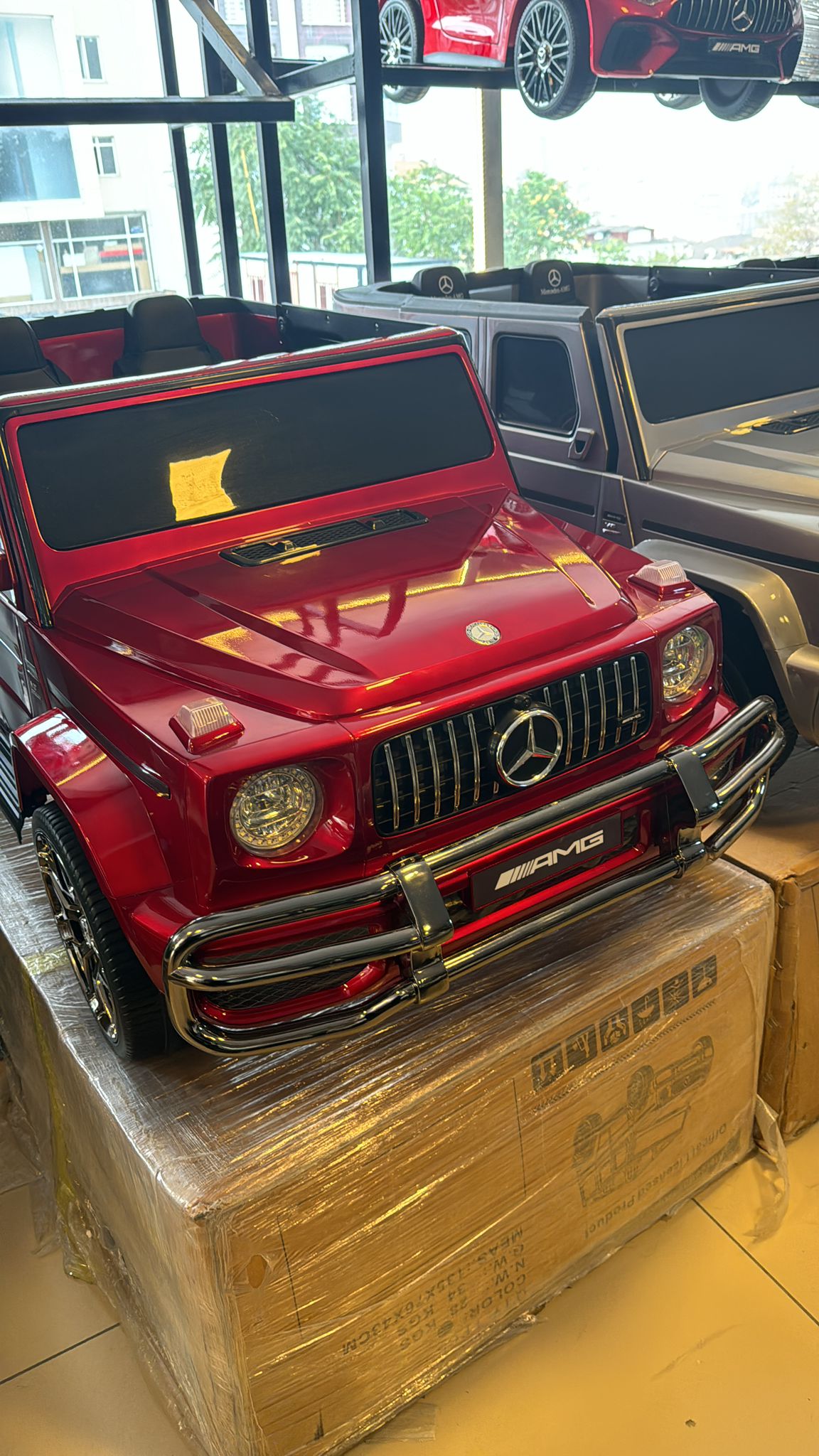 Lisanslı Mercedes g63 24 volt 4×4 (4 tekerden çekişli) Eva yumuşak lastikler Akrilik gerçek araç boyası Deri koltuklar ve emniyet kemerleri Amartisor sistemi Açılır kapanır kapıları Açılışta motor çalıştırma sesi Korna ve kendinden kayıtlı müzikler Müzik çalar USB-aux-microsdkart girişi Güçlü LED farlar ve stop lambaları 80 taşıma kapasitesi 8 yaşa kadar kullanim imkanı ürün ölçüleri 143*82*64